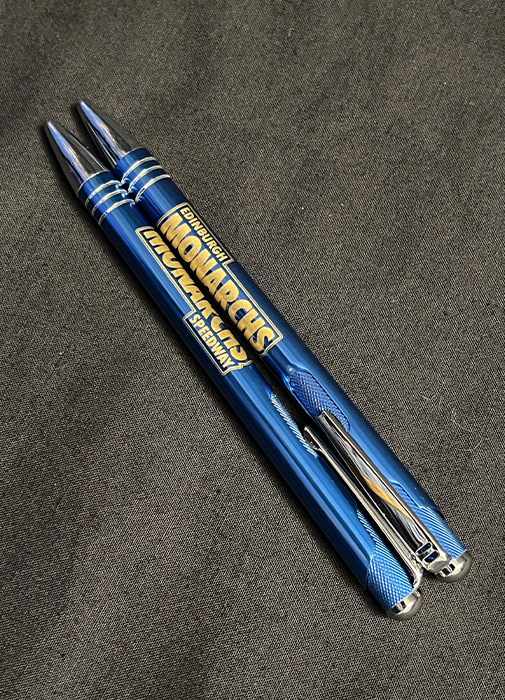 Premium Monarchs pen crafted with a metal body - perfect for everyday use as well as keeping score during the match!