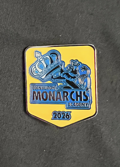 This official 2026 Academy pin badge features the Edinburgh Monarchs crest with Academy branding, finished in a bold blue and gold design. Perfect for supporters following the next generation of talent.