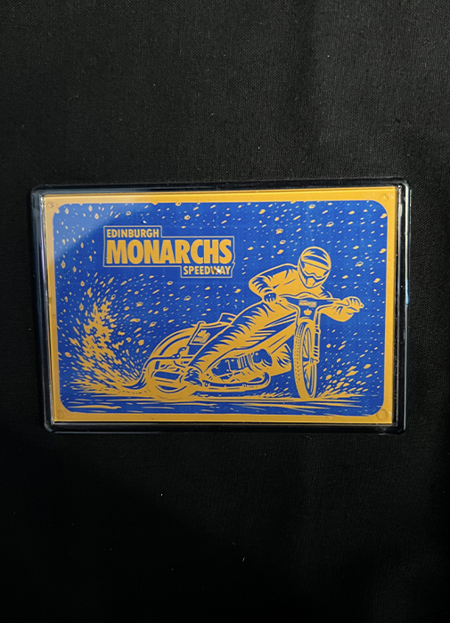 This official fridge magnet features a bold speedway rider design alongside the Edinburgh Monarchs branding, finished in classic blue and yellow. Perfect for fridges, lockers or any magnetic surface.